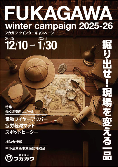 2025/12/11 お知らせ 期間:2025年12月10日~2026年1月30日 フカガワのウィンターキャンペーンを開始いたしました。 さまざまな商品を取り揃えておりますので、どうぞよろしくお願いいたします。 詳しくはお近くの営業員にお問合せください。