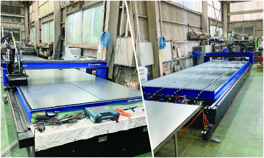 - プラズマ切断機よりも切断速度が圧倒的に早く、製作時における切断待ちが無くなり作業効率が上がりました。