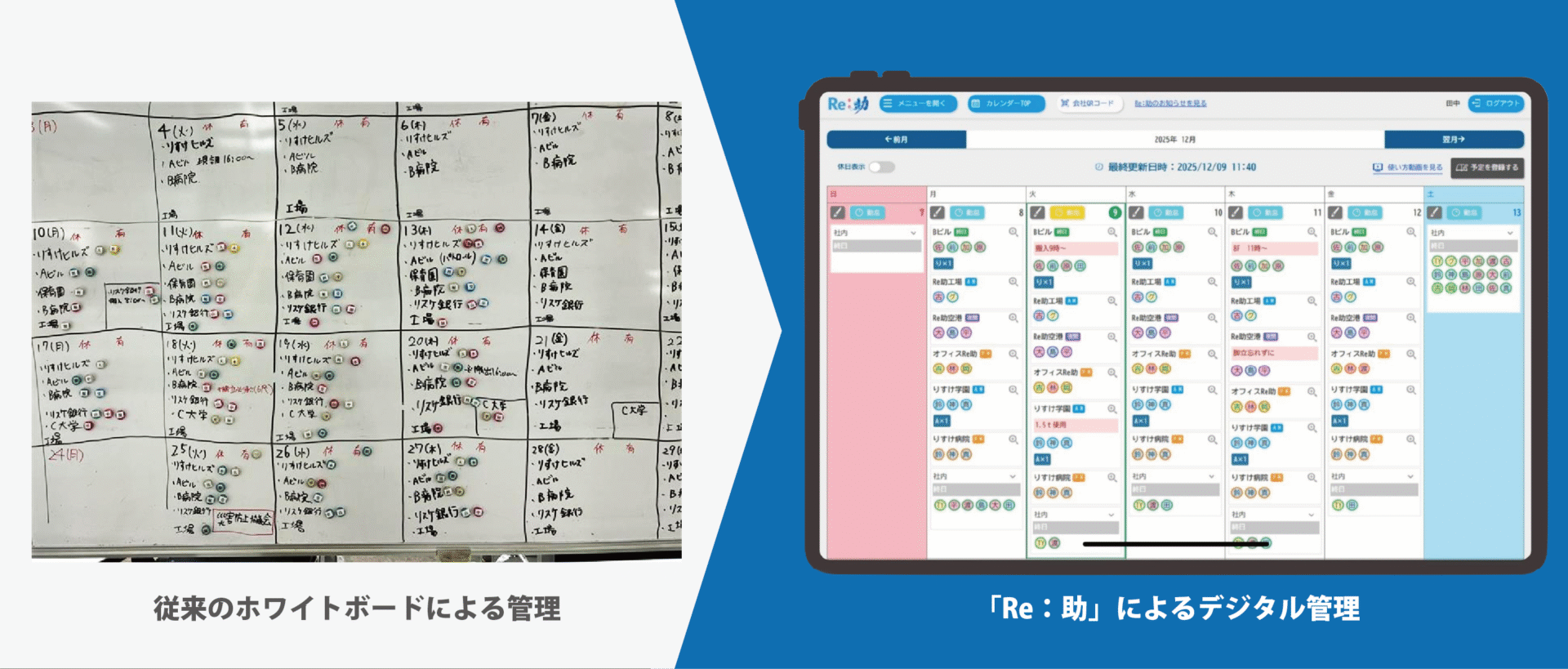 - ホワイトボードや紙の管理では共有が難しい